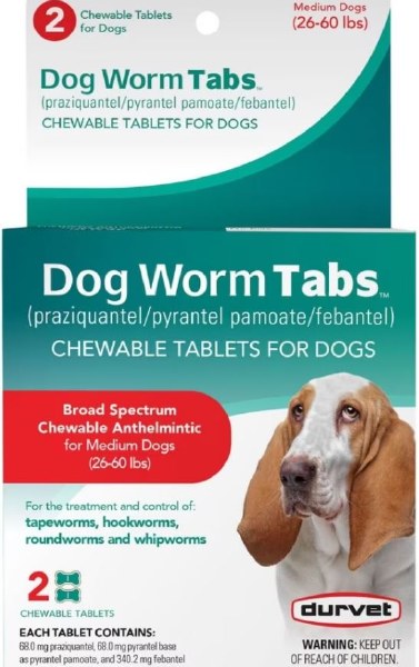 Durvet Dog Worm Tabs, Medium Dog, 26-60lb, 2 Count