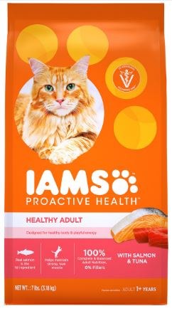 Keep your cats at their best with IAMS PROACTIVE HEALTH Healthy Adult Dry Cat Food with Salmon, a recipe designed to support healthy bodies and provide healthy energy for play. Salmon is the #1 ingredient in this high-quality cat kibble, made for outdoor or indoor cat diets. It helps maintain digestive health by providing a unique, tailored fiber blend that delivers prebiotics and beet pulp, which helps support your cat’s ability to absorb nutrients. Plus, the crunchy cat kibble texture helps reduce plaque buildup. If you’re looking for the salmon flavor cats love, get your paws on this… and keep your feline happy, healthy, and ready to pounce with the 100% complete and balanced nutrition of IAMS.