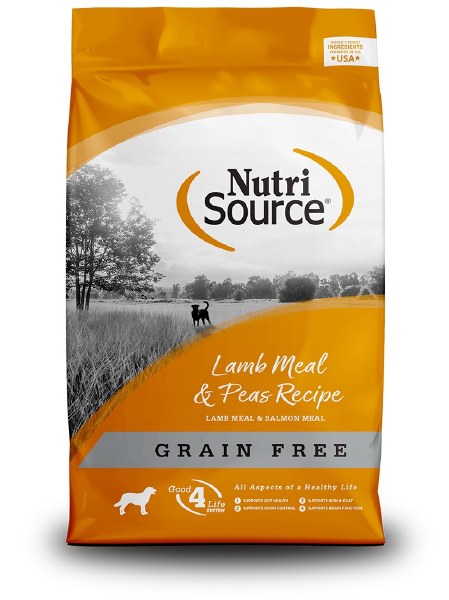 NutriSource Grain Free Lamb - Lamb meal is the #1 ingredient in NutriSource Grain Free Lamb, which provides super premium nutrition for your dog. The grain and gluten-free formula is easy on digestion and features the NutriSource exclusive “Good 4 Life” system and is made with the finest quality pure ingredients available. Made with peas, a low glycemic legume, also a great source of protein, fiber, and the essential amino acid lysine. Peas supply complex carbohydrates, vitamins A and C, iron and beneficial fiber to support digestive function