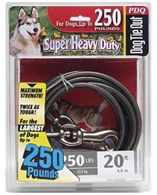 Heavy duty tie-out is made to clip onto lawn stakes or anchors to secure dogs in unfenced yards.