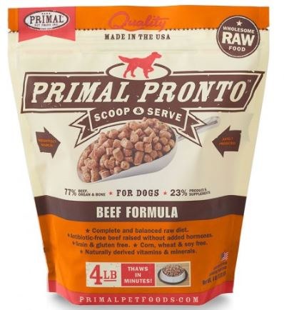 Primal Pet Foods Raw Frozen Canine Beef Formula provides complete and balanced nutrition for all life stages and is comparable in nutritional adequacy to a product which has been substantiated using AAFCO feeding tests.