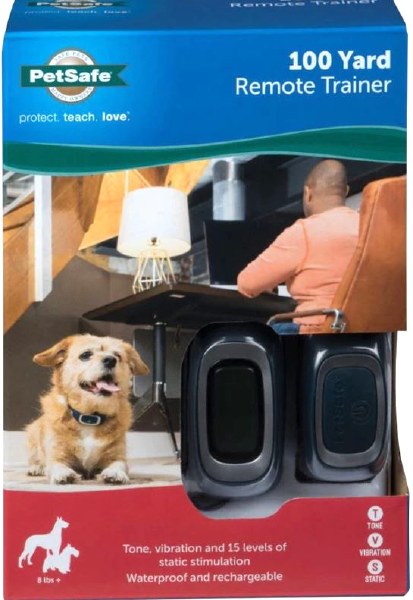 Created for hands-on training when your dog is close by, the 100 Yard Remote Trainer is a short-range trainer for medium to large dogs. The 100-yard range is perfect for the next level of training in learning how to behave on or off leash. The remote fits comfortably in the palm of your hand, and we specifically designed the buttons to be intuitive, so theyre easy to remember and right where you expect them to be. The large font display is easy to read any time of day or night. Built to last a lifetime, this training system is durable enough to survive even your most unpredictable adventures. The collar is premium coated nylon, and the collar and remote are waterproof perfect for spontaneous puddle jumping. Your pet deserves the best. Trust PetSafe to help keep your pet healthy, safe and happy.