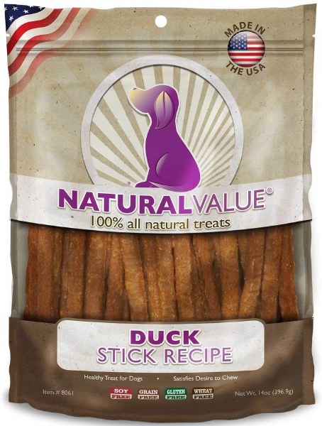 Natural Value Duck Sticks are made in the U.S.A., and are proof that healthy, safe U.S.A. made dog treats can be affordable. Cooked on open grilling racks to reduce fat and give them a delicious flavor, our Duck Meat Sticks are sure to be your dog’s favorite treat. Since they’re made in the U.S.A., they should be your favorite too.