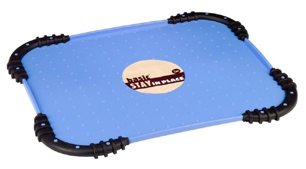 Sturdy plastic base makes for easy cleaning, embossed surface prevents bowls from slipping, and rubber edges keep mat in place. Mat measures approximately 18.5"L x 15.25"W. - Available in assorted colors, please let us select a color for you.