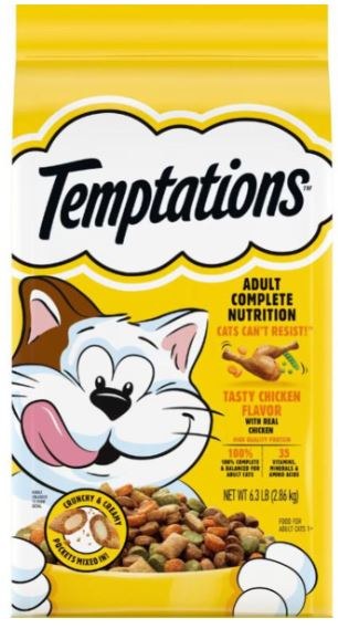 Cats Can’t Resist: Your cat will be thrilled to get a taste of TEMPTATIONS Tasty Chicken Flavor adult cat food; this dry cat food offers high-quality protein with real, tasty chicken. 100% Complete and Balanced for Adult Cats: This delicious dry cat food offers your feline friend 35 vitamins, minerals, and amino acids; Omega-6 Fatty Acids help maintain shiny fur; Calcium and Vitamin D support healthy teeth and bones. Made with Real Chicken: TEMPTATIONS Tasty Chicken Flavor adult cat food is made with real, tasty chicken that your cat won’t be able to get enough of. Crunchy & Creamy Pockets Mixed In: To keep your cat coming back for more, there are irresistible crunchy outside, and soft-on-the-inside pockets included in this dry food. Try the Irresistible TEMPTATIONS Line: If your cat is craving more than delicious kibble, try out Classic TEMPTATIONS Cat Treats; our delicious cat treats come in a variety of flavors from chicken to beef to catnip that your cat won’t be able to resist.