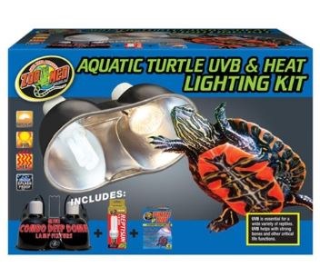 Help keep your aquatic turtle happy and thriving with the Zoo Med Aquatic Turtle UVB & Heat Lighting Kit. Designed as a dual fixture, it includes two different bulbs to meet the varying needs of your swimming buddy-a splash-proof halogen bulb that gives off light and heat to mimic the daytime sun, and a UVB bulb that’s essential for health. Turtles need UVB light to maintain strong bones and overall health, so you can feel good about taking care of your pal with this lighting kit. The deep dome fixture design keeps the hot bulbs out of reach for both you and your pal. Plus, both fixtures have a convenient on and off switch for safe, on demand control of lighting and heating time.